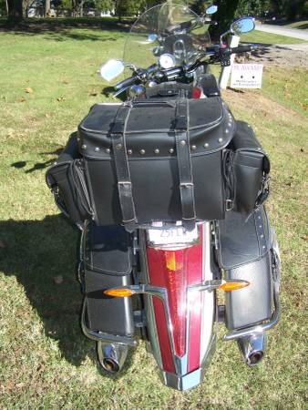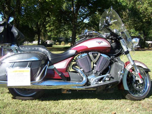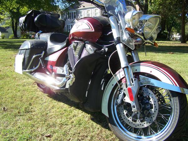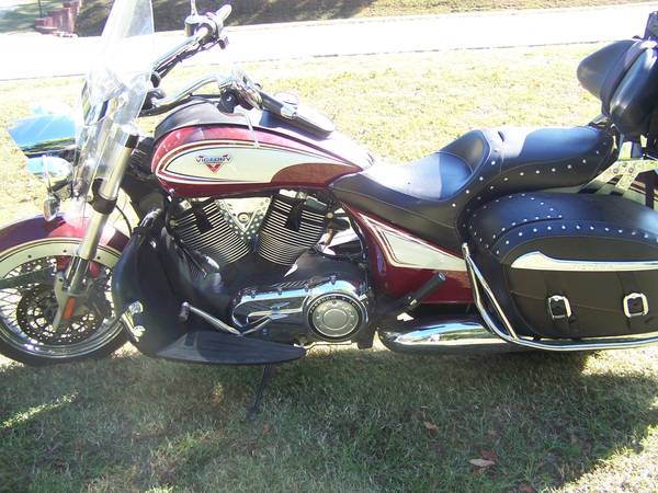 Beautiful 2013 Victory Crossroads - 1737 cc ( 106 Cubic Inch ) fuel injected , stunning Burgundy and Khaki color , 100K well serviced miles , quiet belt drive , 6 speed, tires have less than 100 miles on them , Bags, windshield, driving lights , luggage rack and trunk bag, floorboards , cruise control, leather lowers .